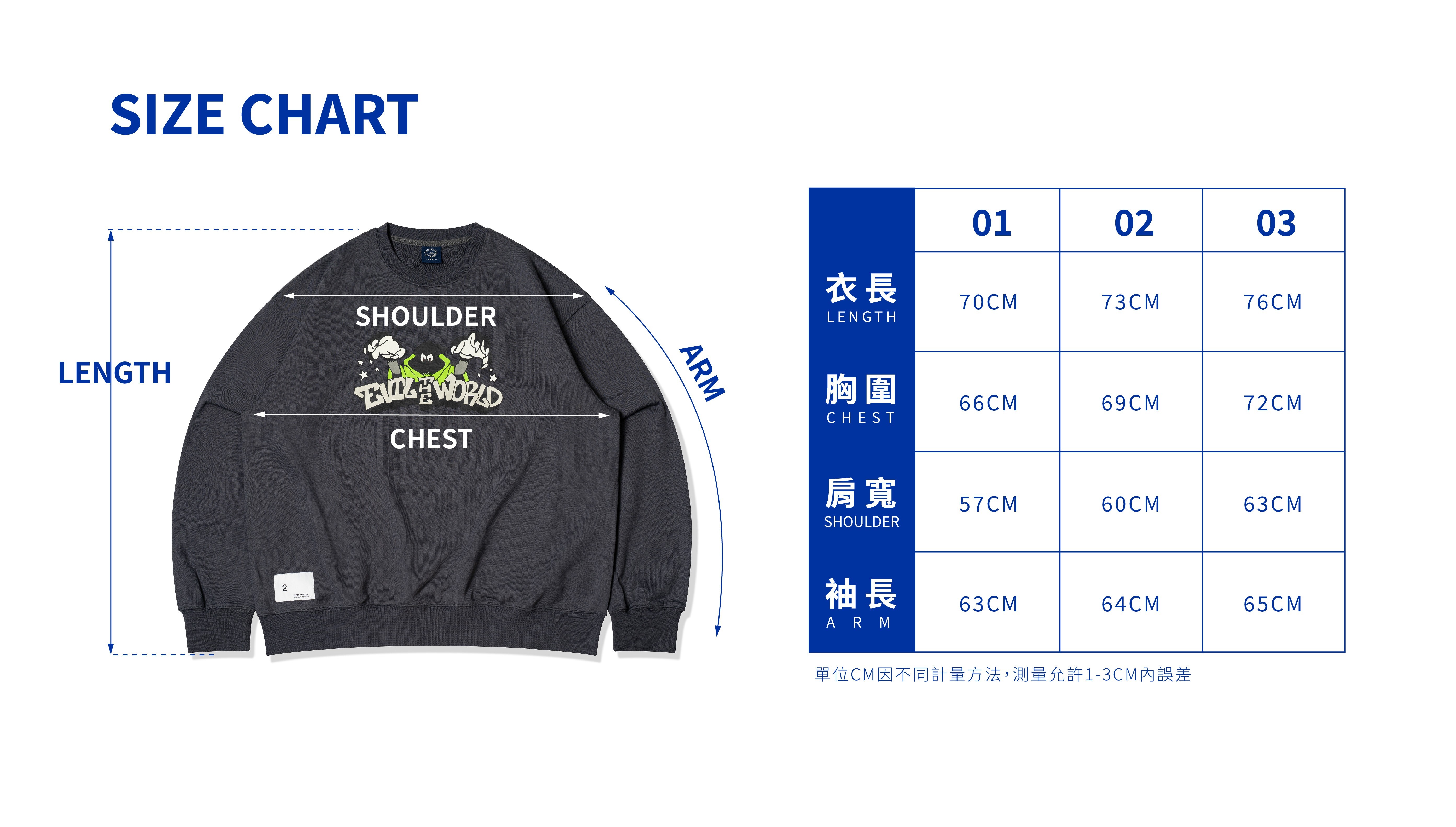 01 : 衣長70cm / 胸寬66cm / 肩寬57cm / 袖長63cm