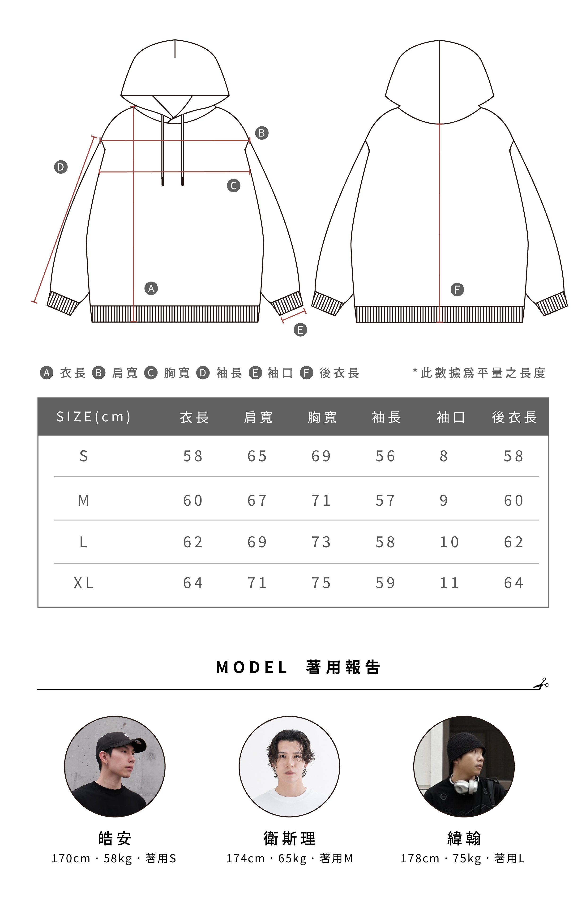 - 正面附插手口袋,袖口與下擺緊實螺紋