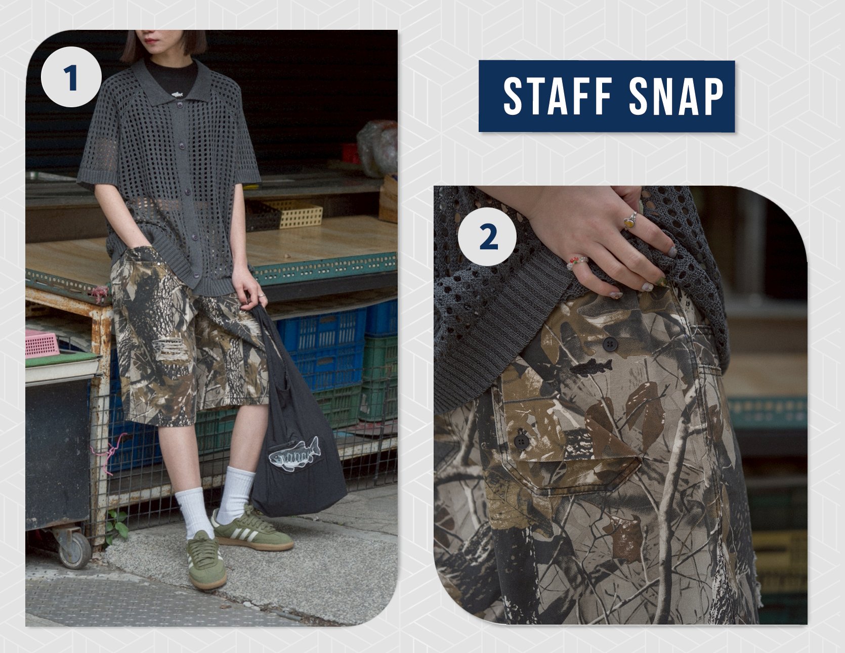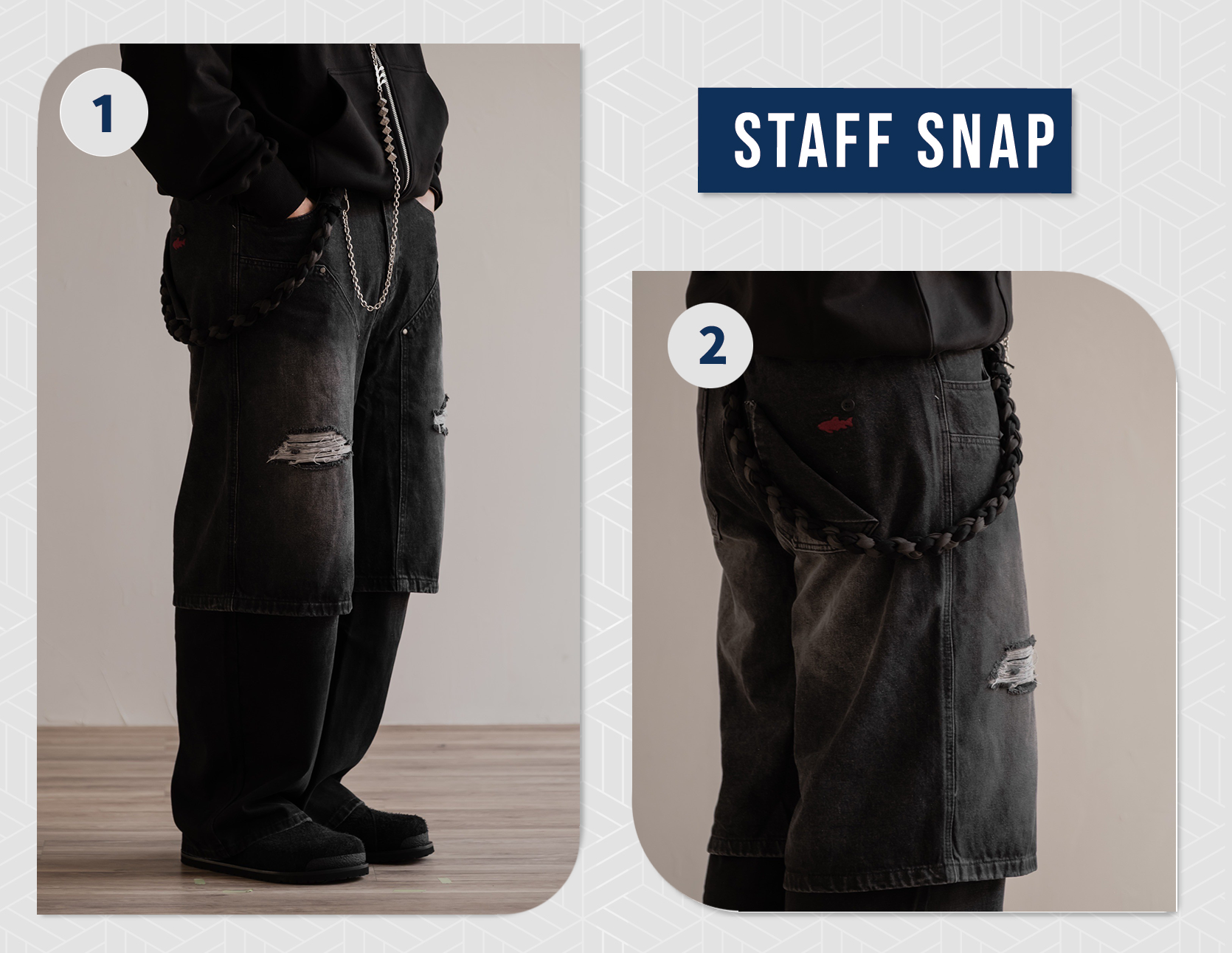 - 後口袋處魚影刺繡,帶有神秘感細節