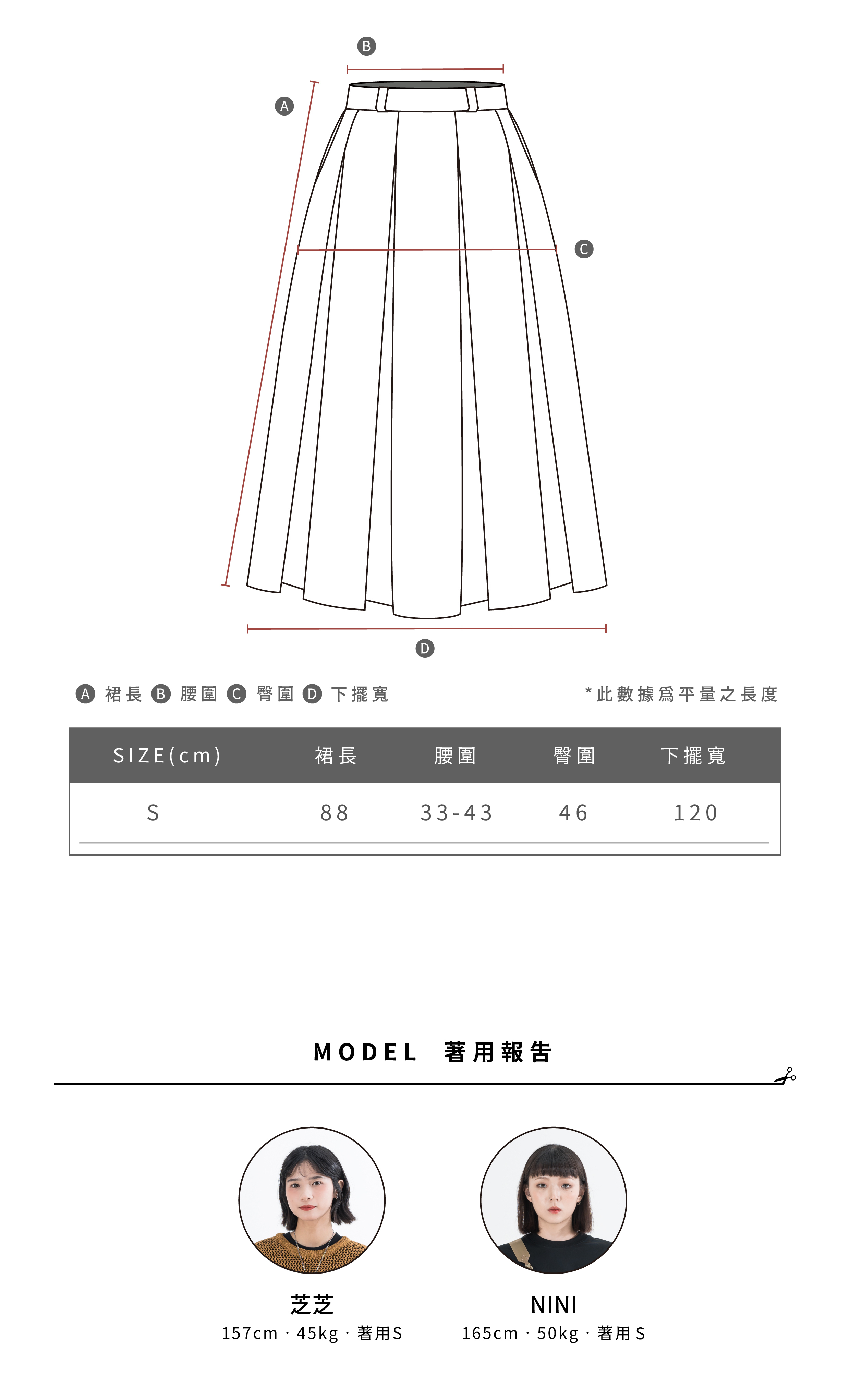 - 女裝支線分層長裙,採用高腰寬鬆版型