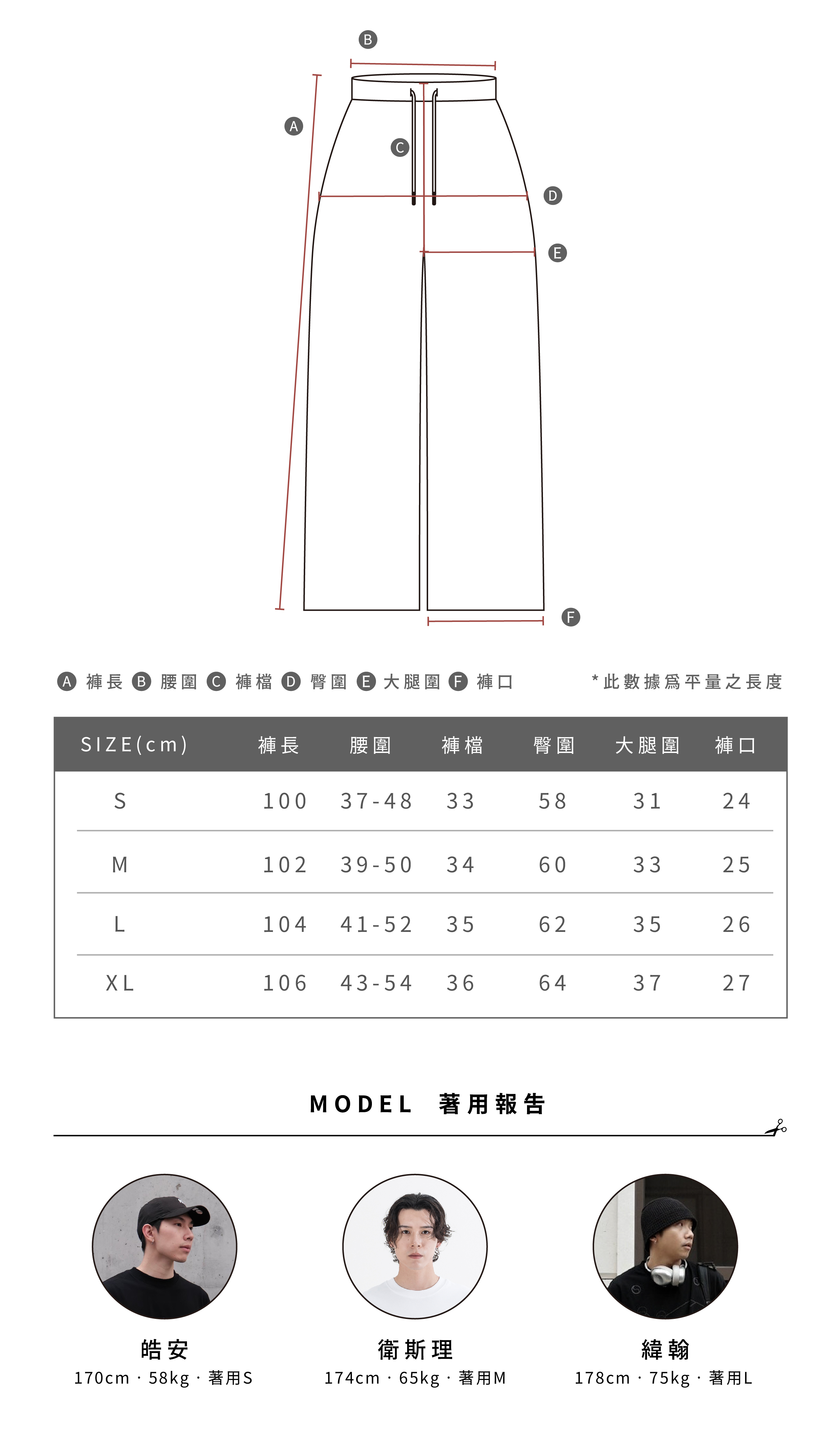 - 腰圍彈性鬆緊,褲耳可繫皮帶