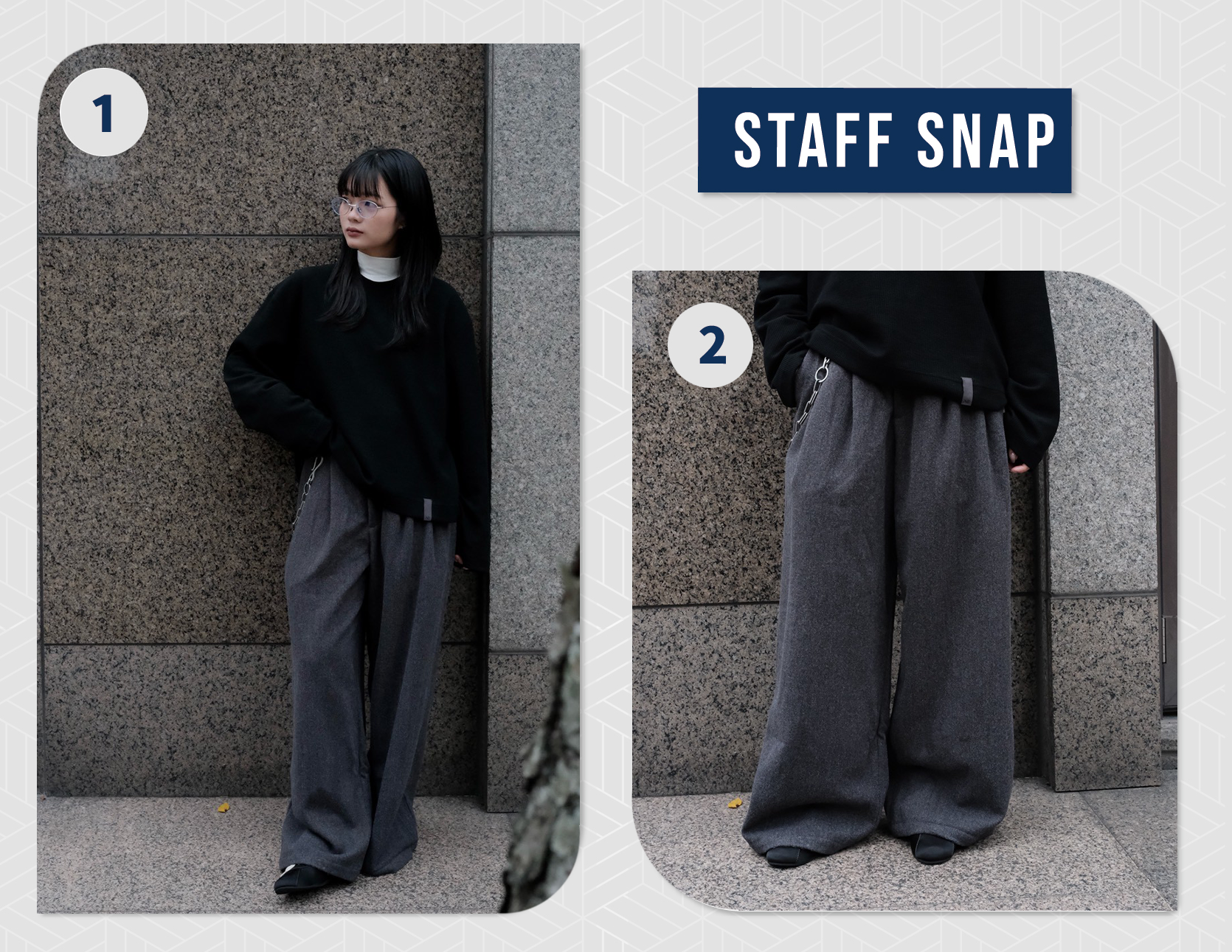 - 西裝褲版型設定,自然垂墜且帶有闊腿效果