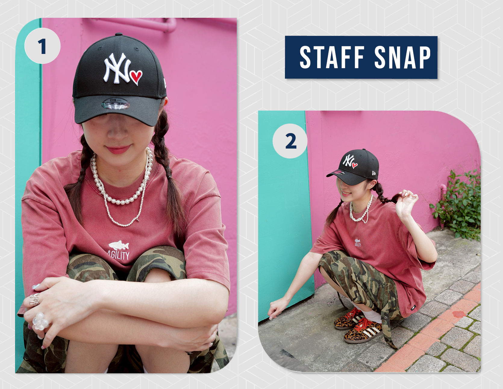 - 愛心刺繡點綴,搭配基本款配色