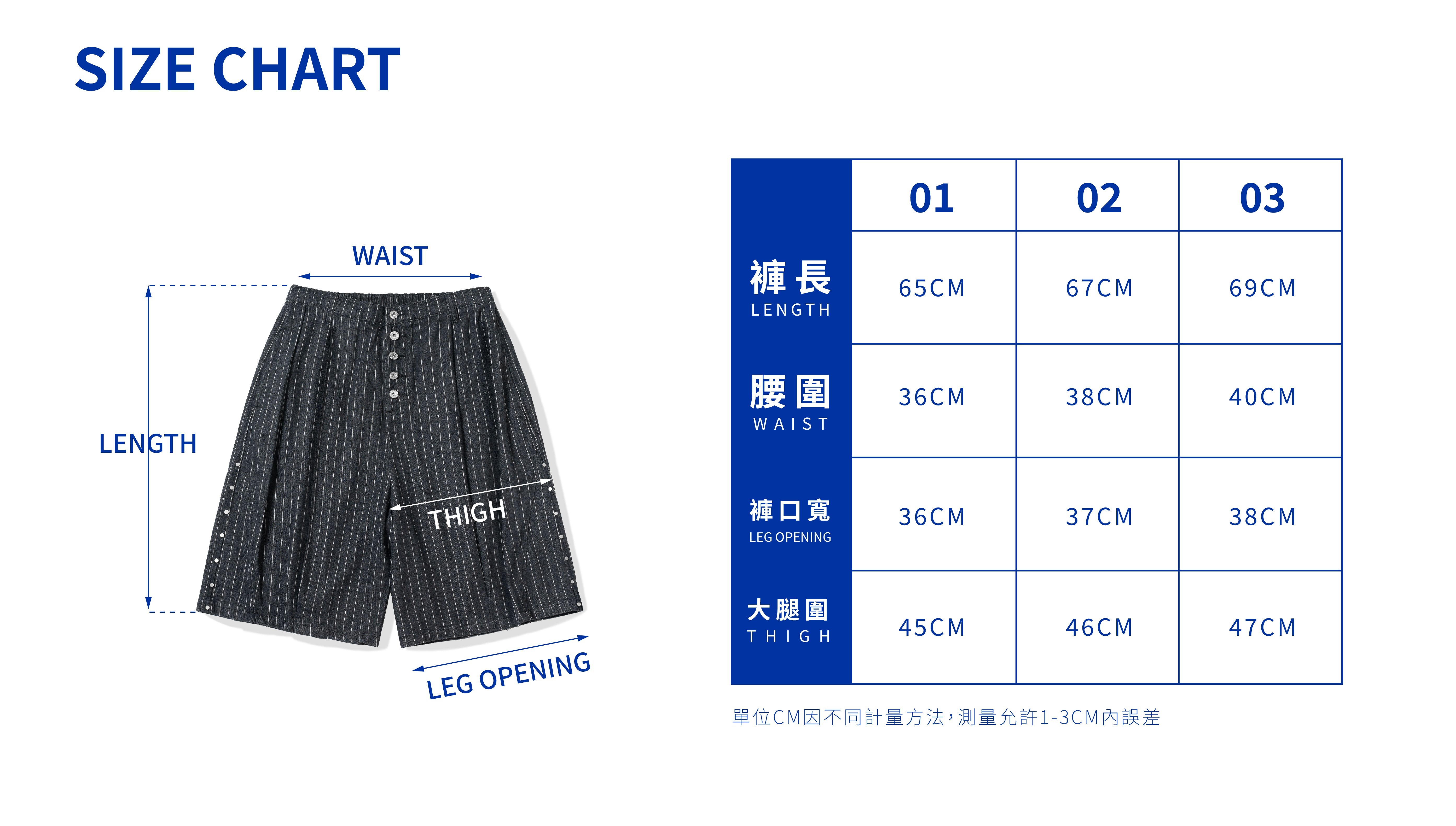 01:褲長65cm / 褲口36cm / 腰圍36cm / 大腿寬45cm