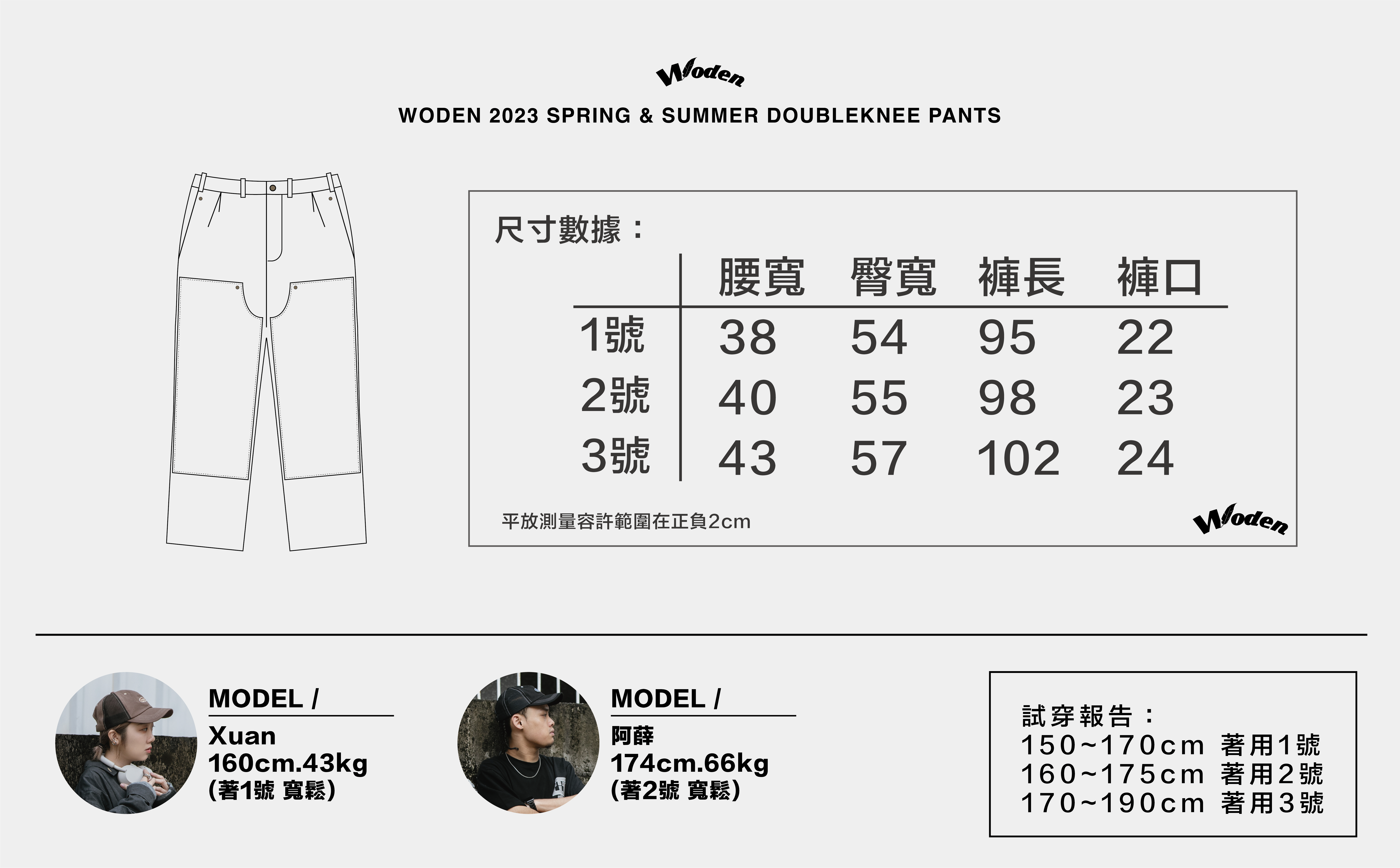 - 本次設計團隊以Doubleknee Pants 作為主體,採用了舒適且百搭的直筒褲版型。正面裁片