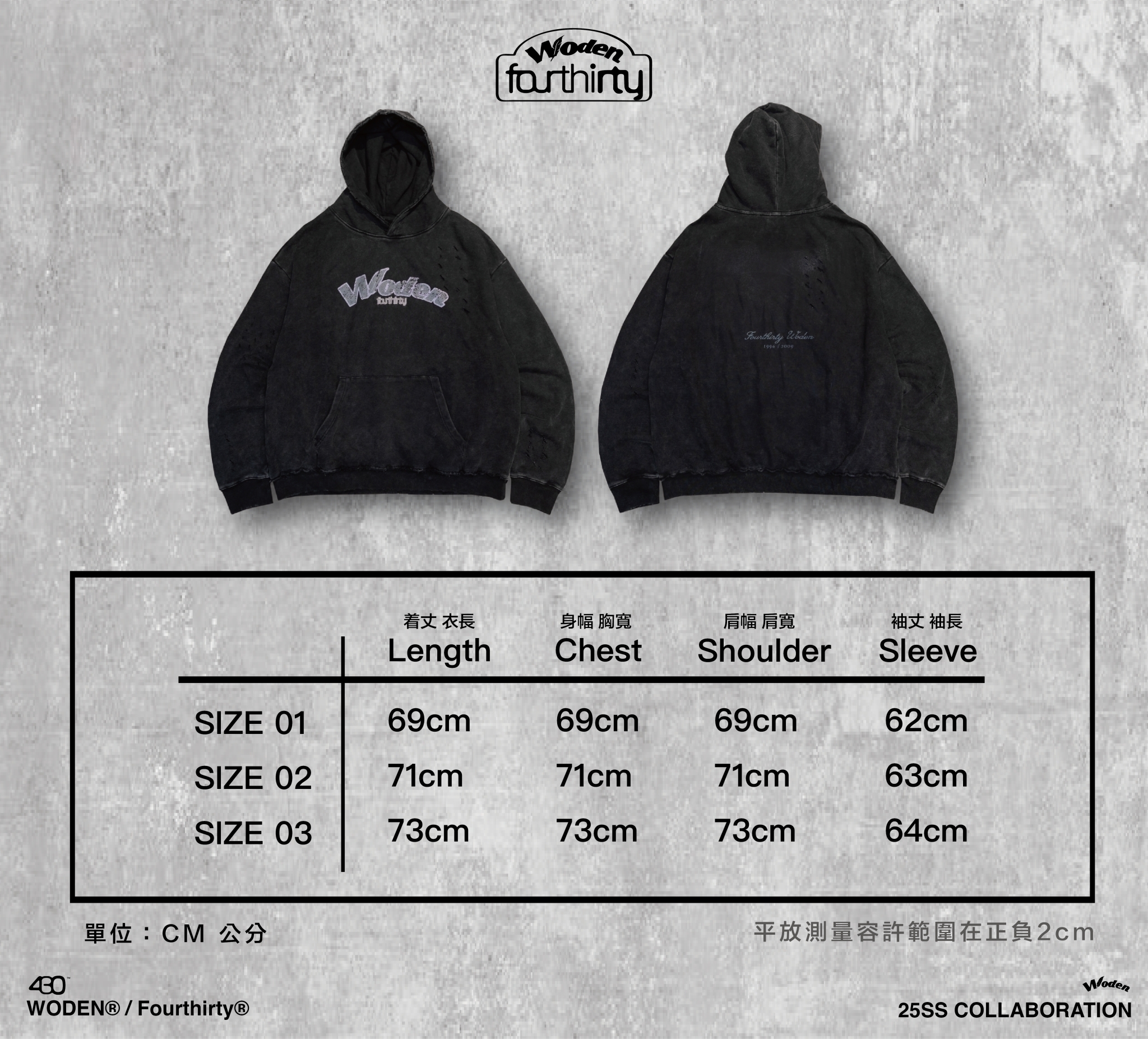 WODEN® x Fourthirty® Wash Classic Logo Hoodie 經典Logo 水洗帽Tee