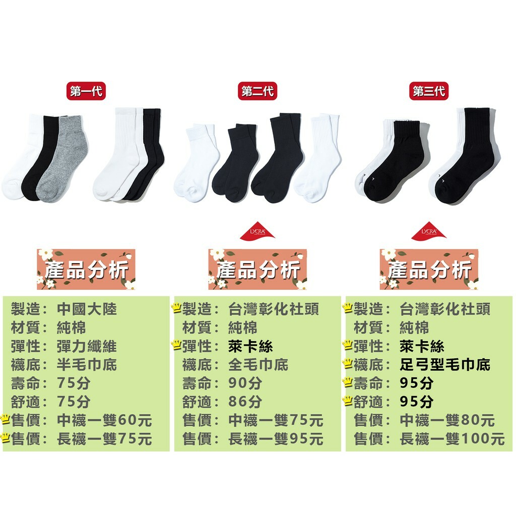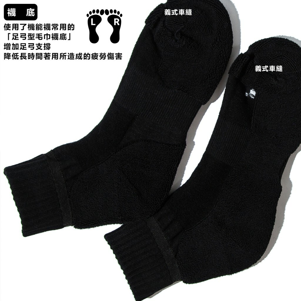 襪子底部:足弓型毛巾底,吸汗與些許抗震效果