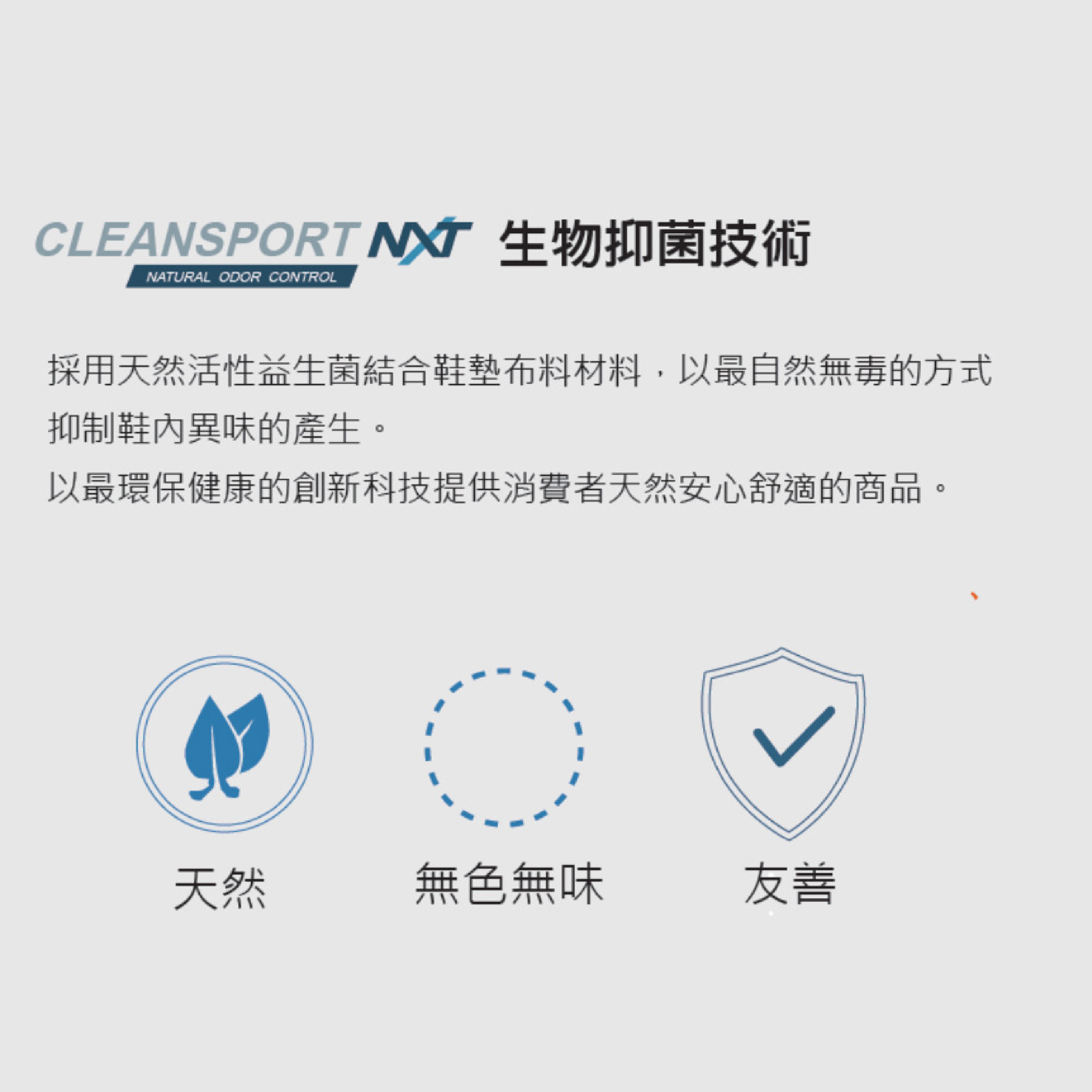 - 可拆式PU鞋墊CLEANSPORT NXT™生物抑菌技術,能抑制異味產生