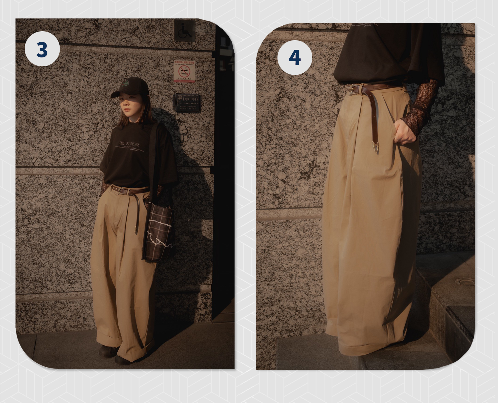 - 版型採寬直筒剪裁,低腰設定修飾身型