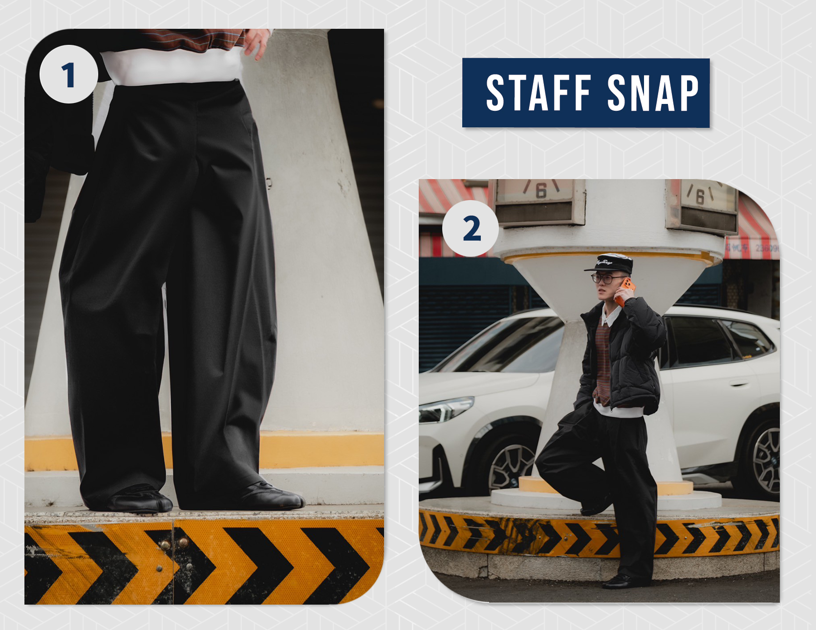 - 採寬鬆闊腿版型,褲管微收繭型感