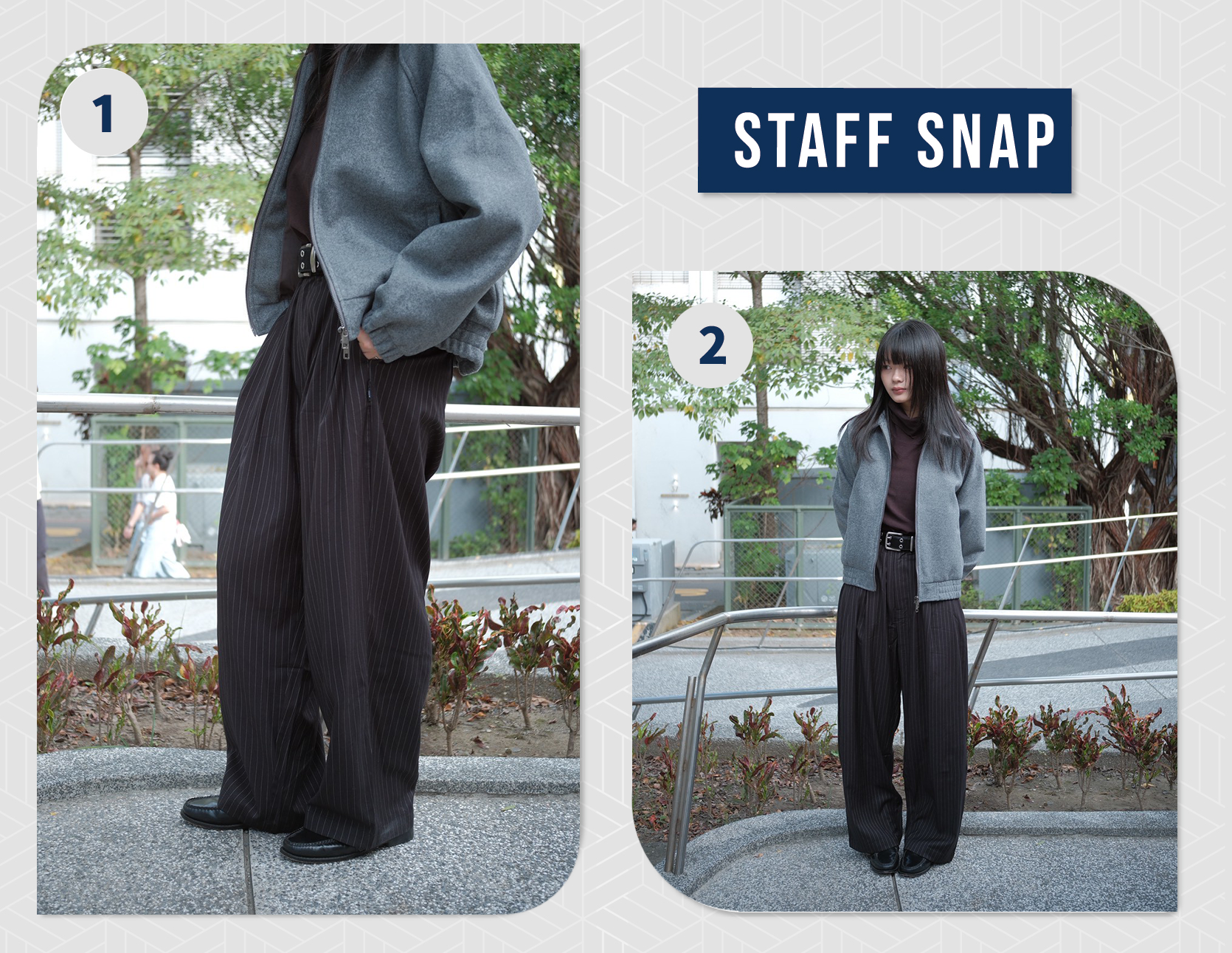 - 延續優質西裝褲布料,加上條紋設計點綴
