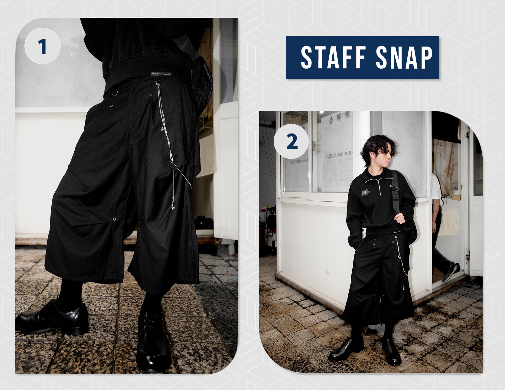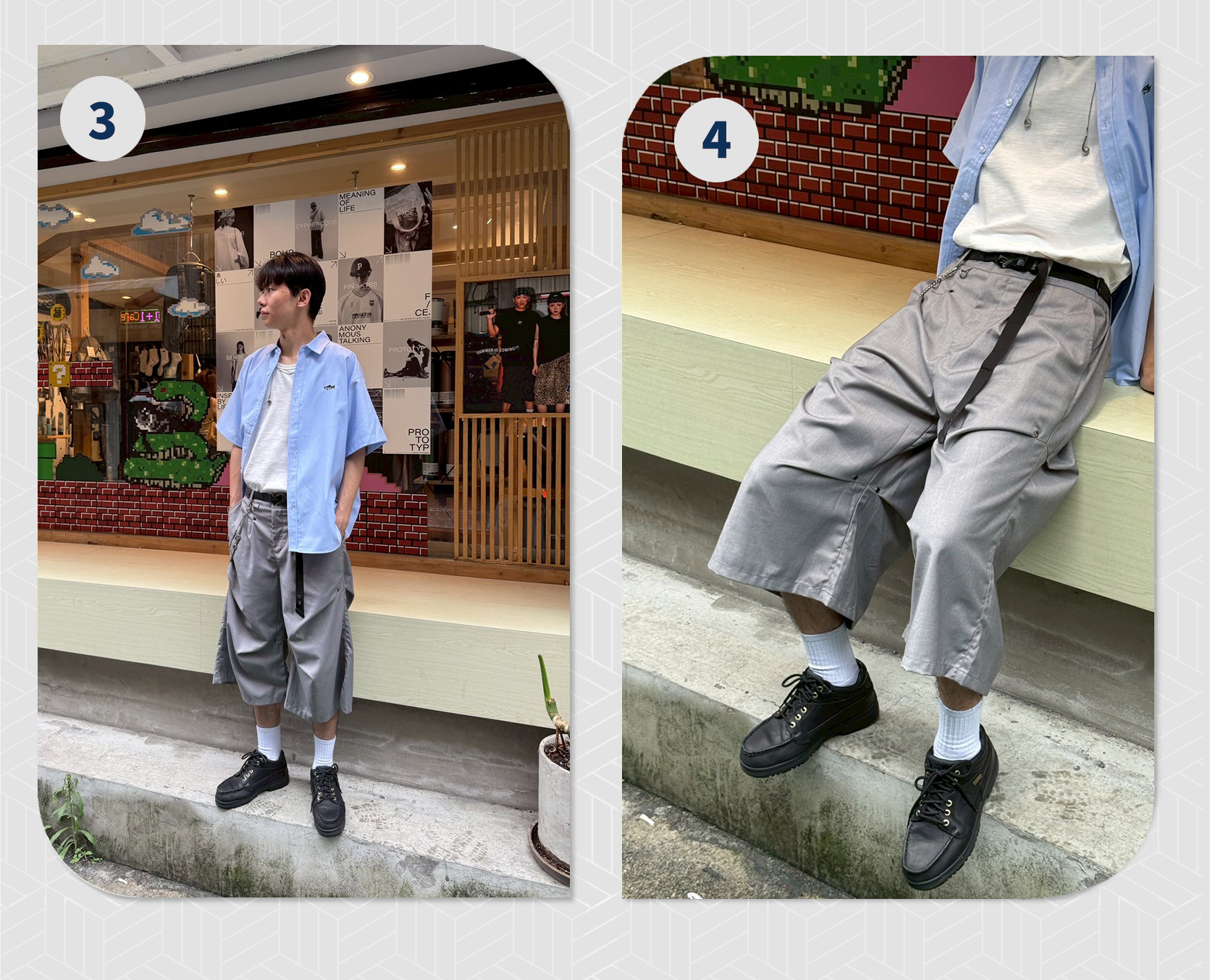 - 打褶線條剪裁設計,褲型呈現傘兵褲型