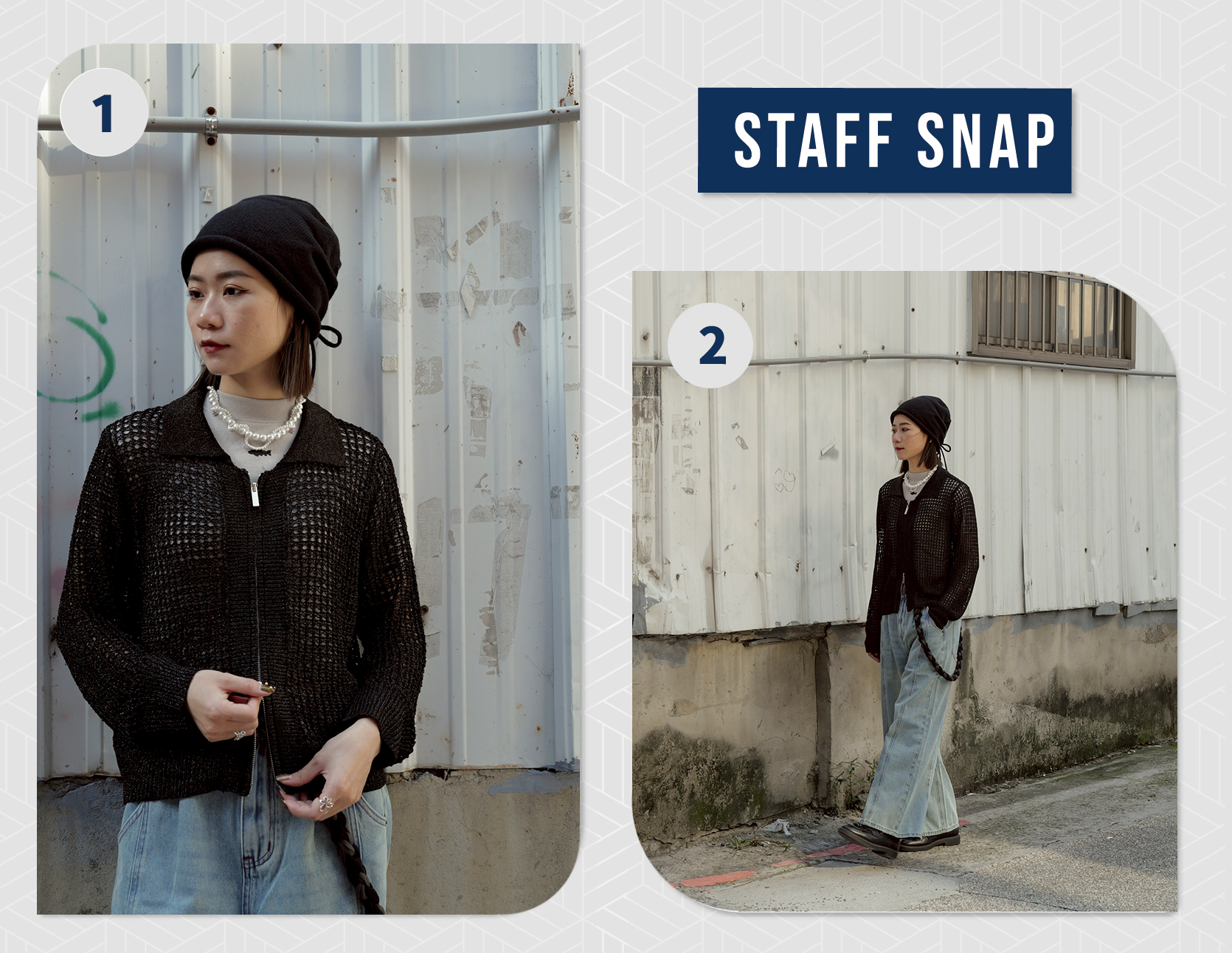 - 銀蔥織線亮點十足,袖長偏長自然堆疊