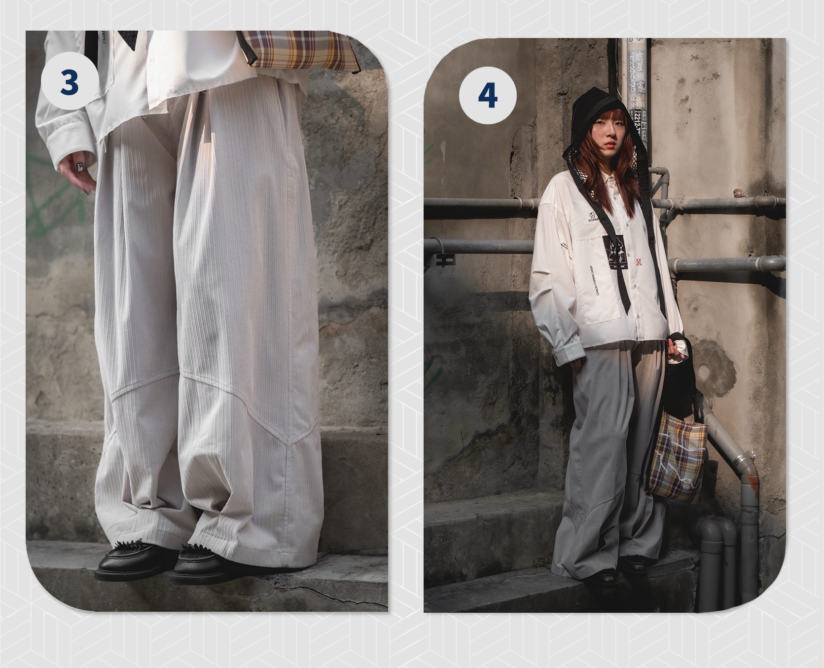 AGILITY MIAO Wide Leg Pants 坑條雙褶 闊腿長褲 [M-P60]