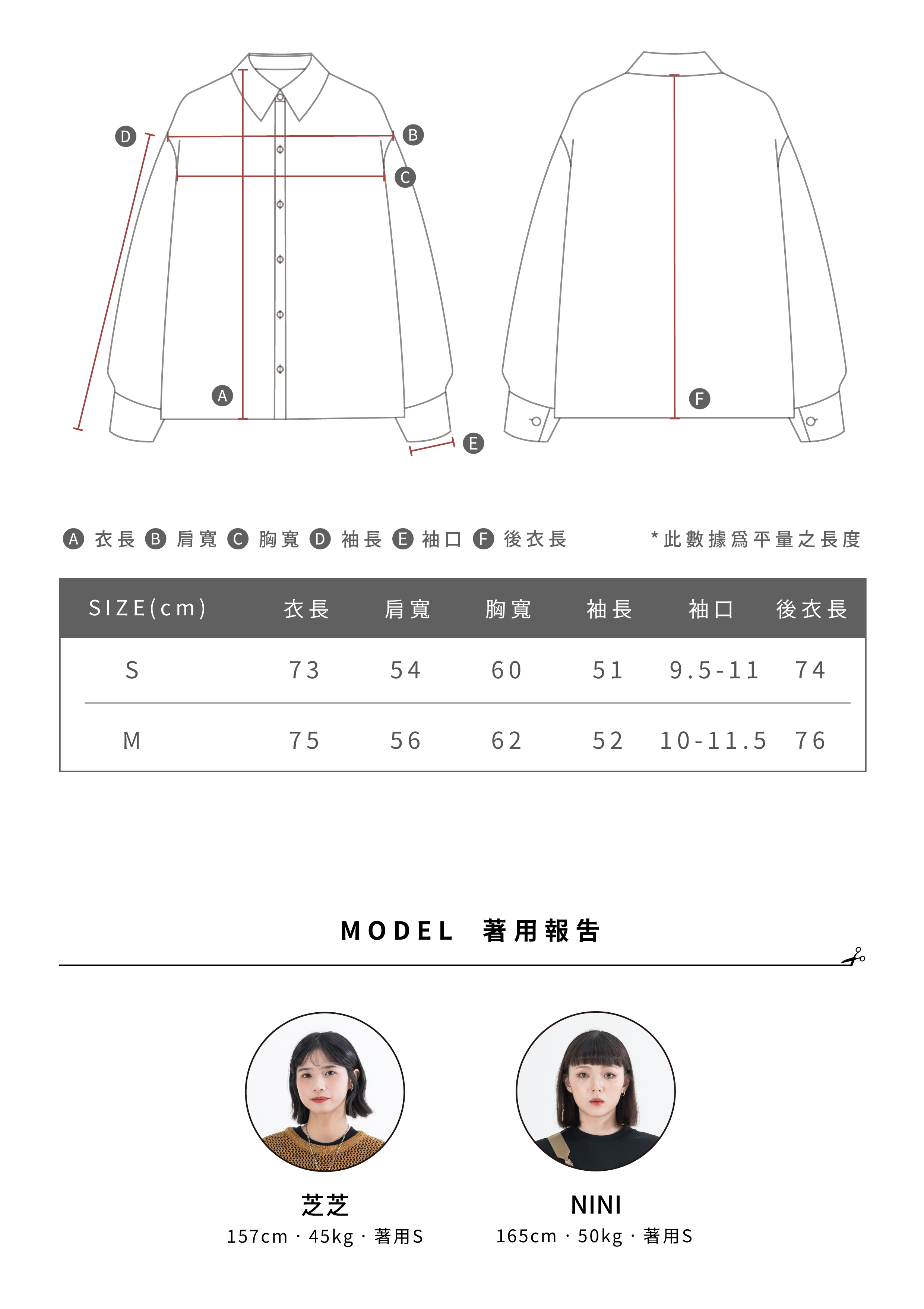 - 中長版的襯衫版型,單穿可當襯衫洋裝