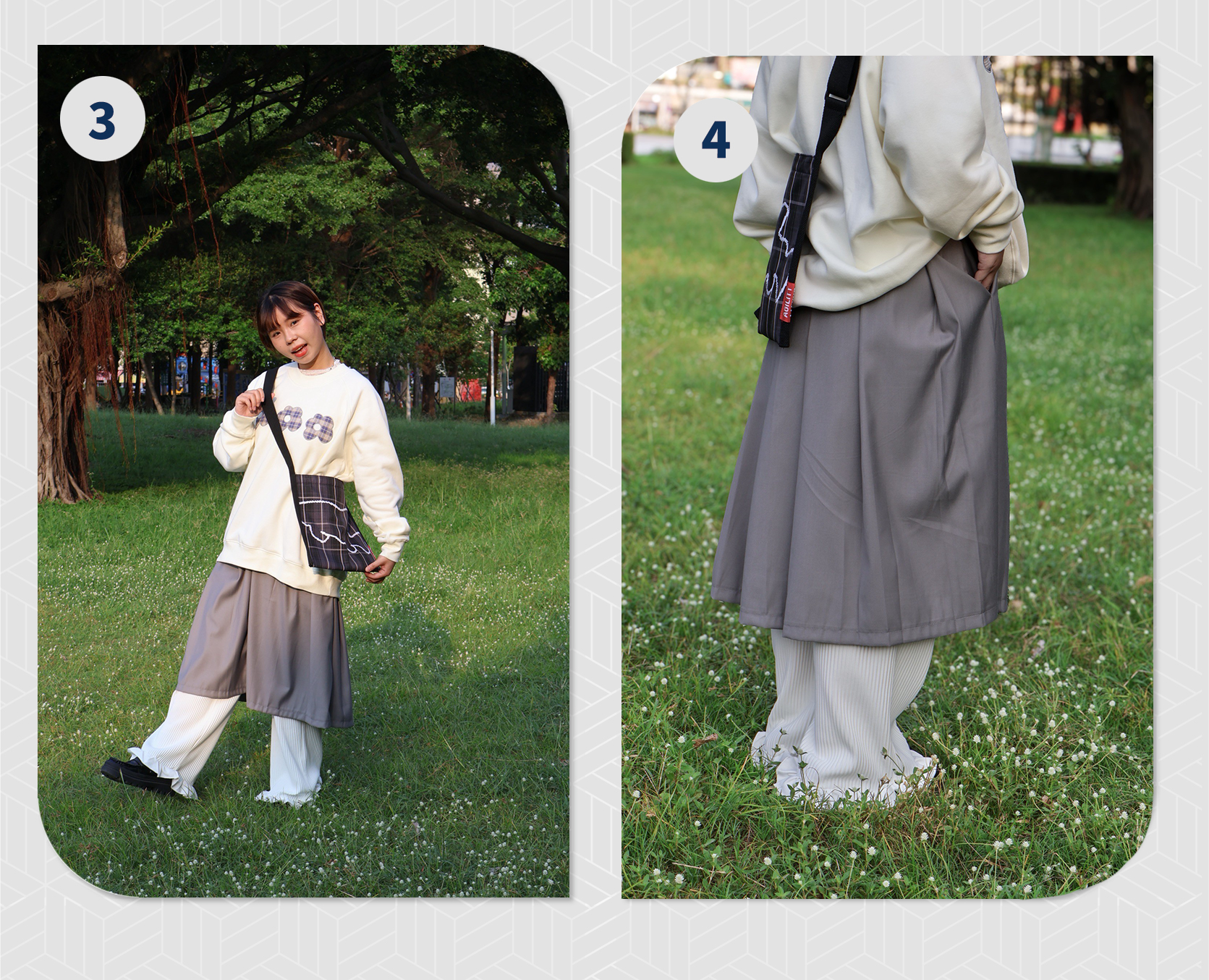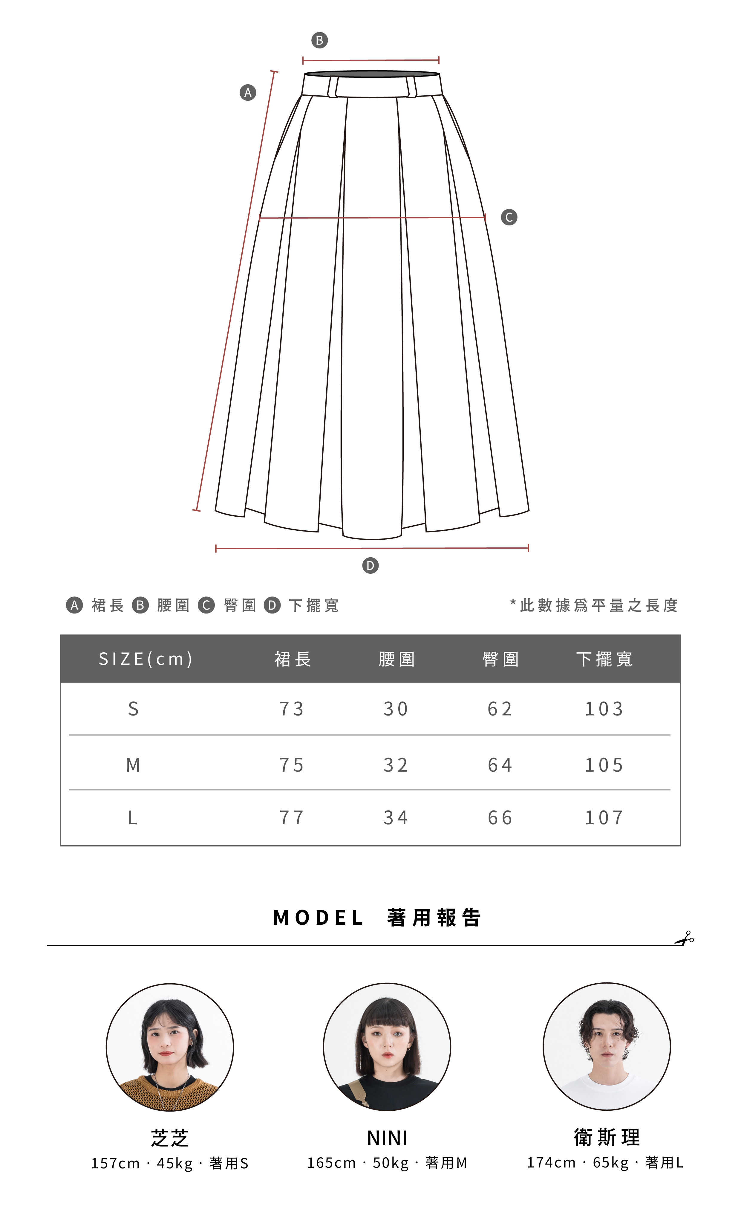- 百褶長裙設計,雙層內裏穿著更加舒適