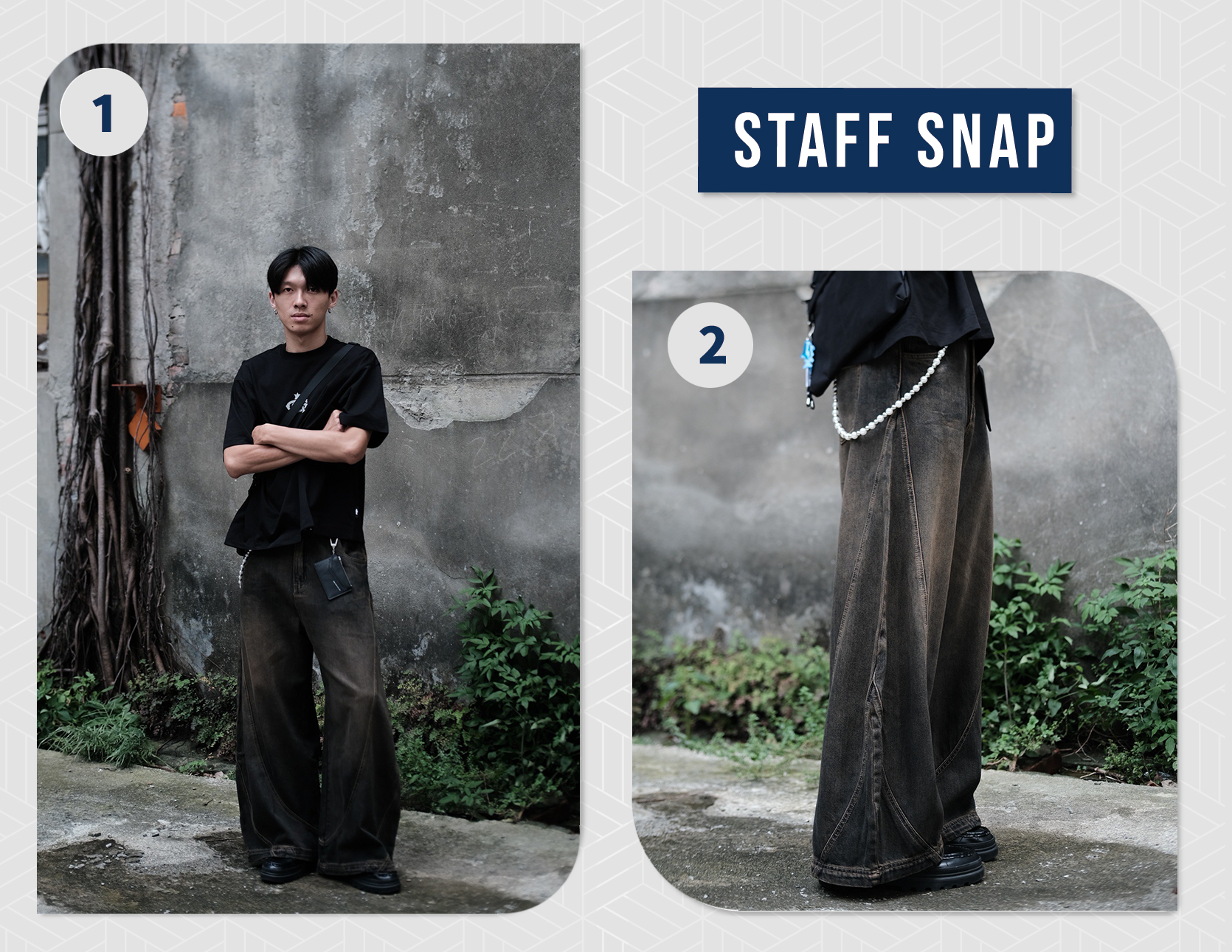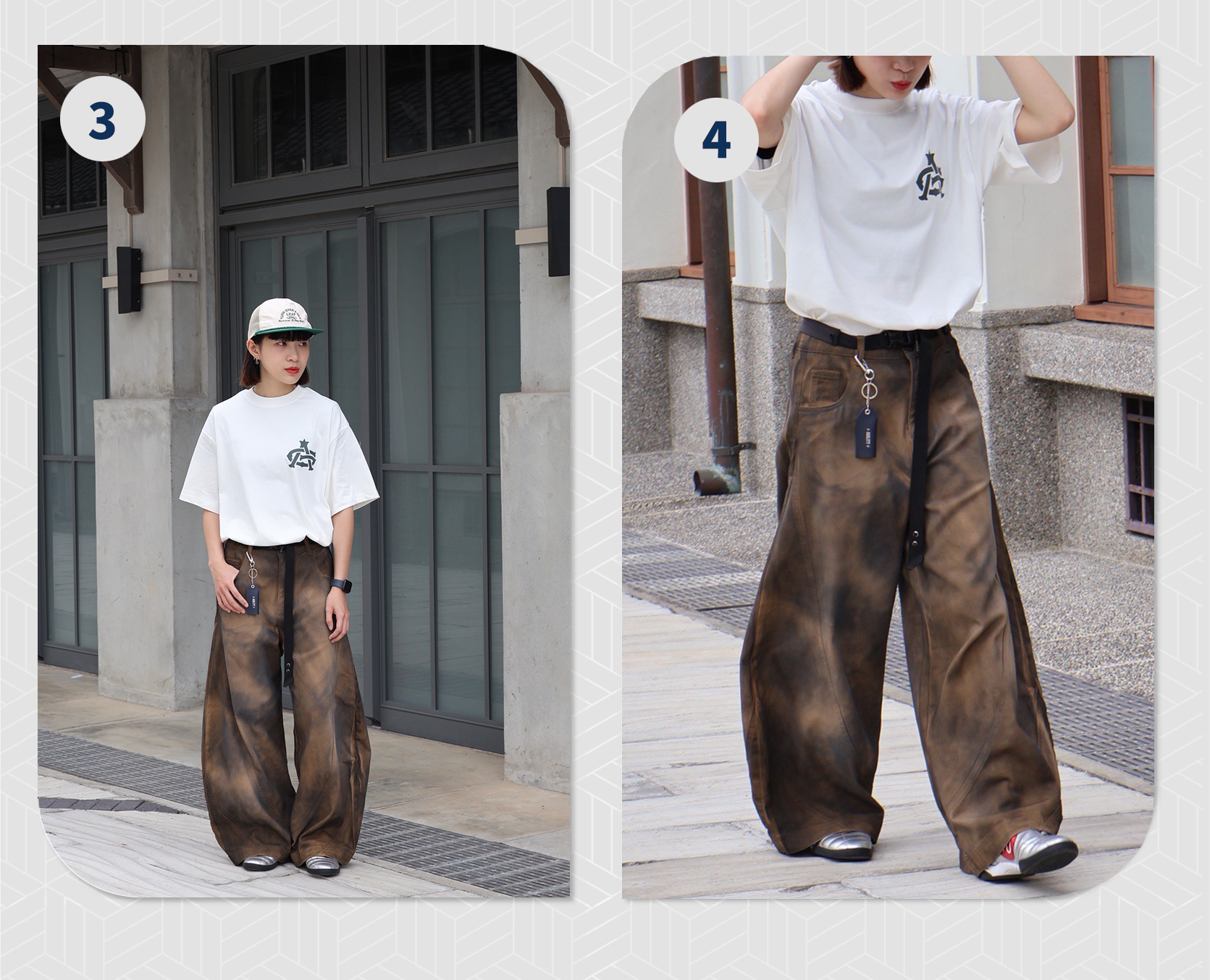 - 再度推出彎刀長褲,版型帶有闊腿效果
