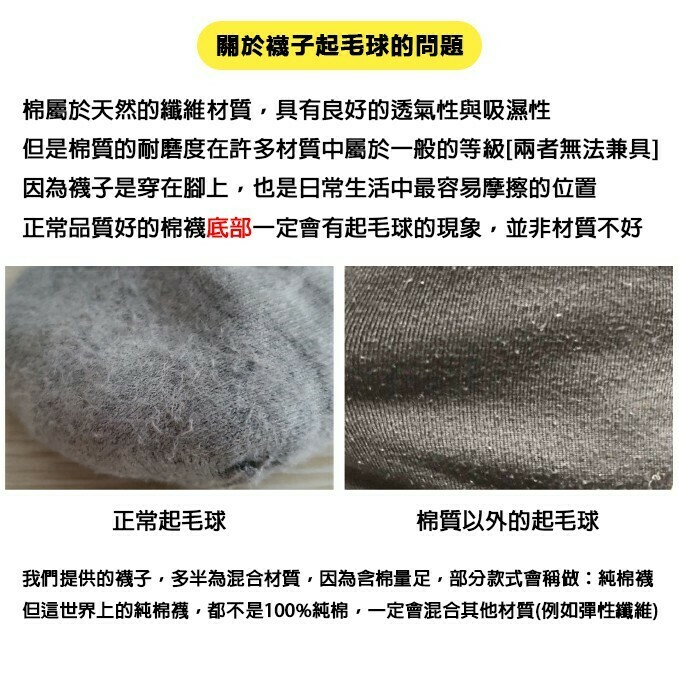 純棉襪,前三次洗滌會有毛球,屬正常現象