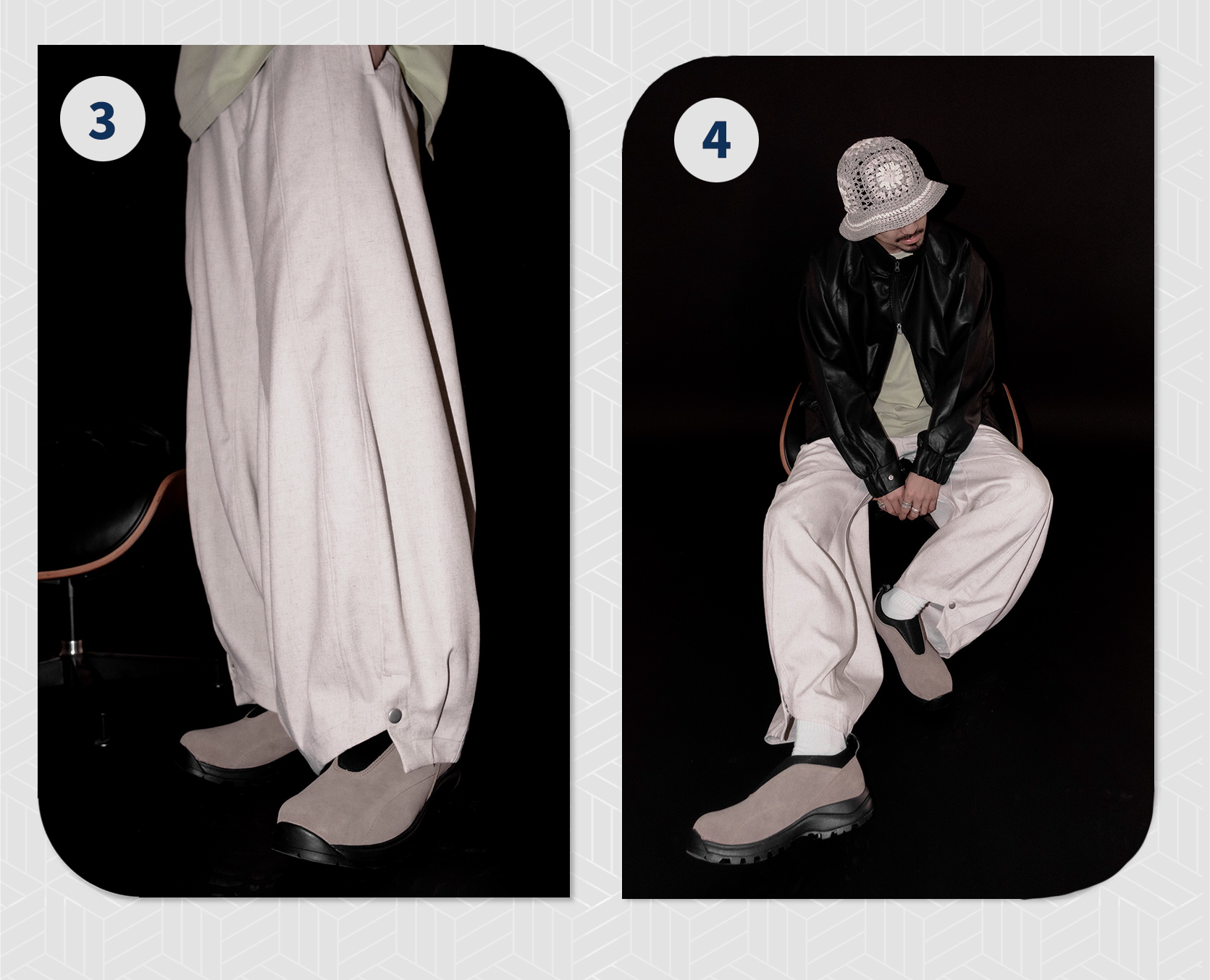 - 強調立體剪裁與特殊流線弧形,順勢拉長腿部比例