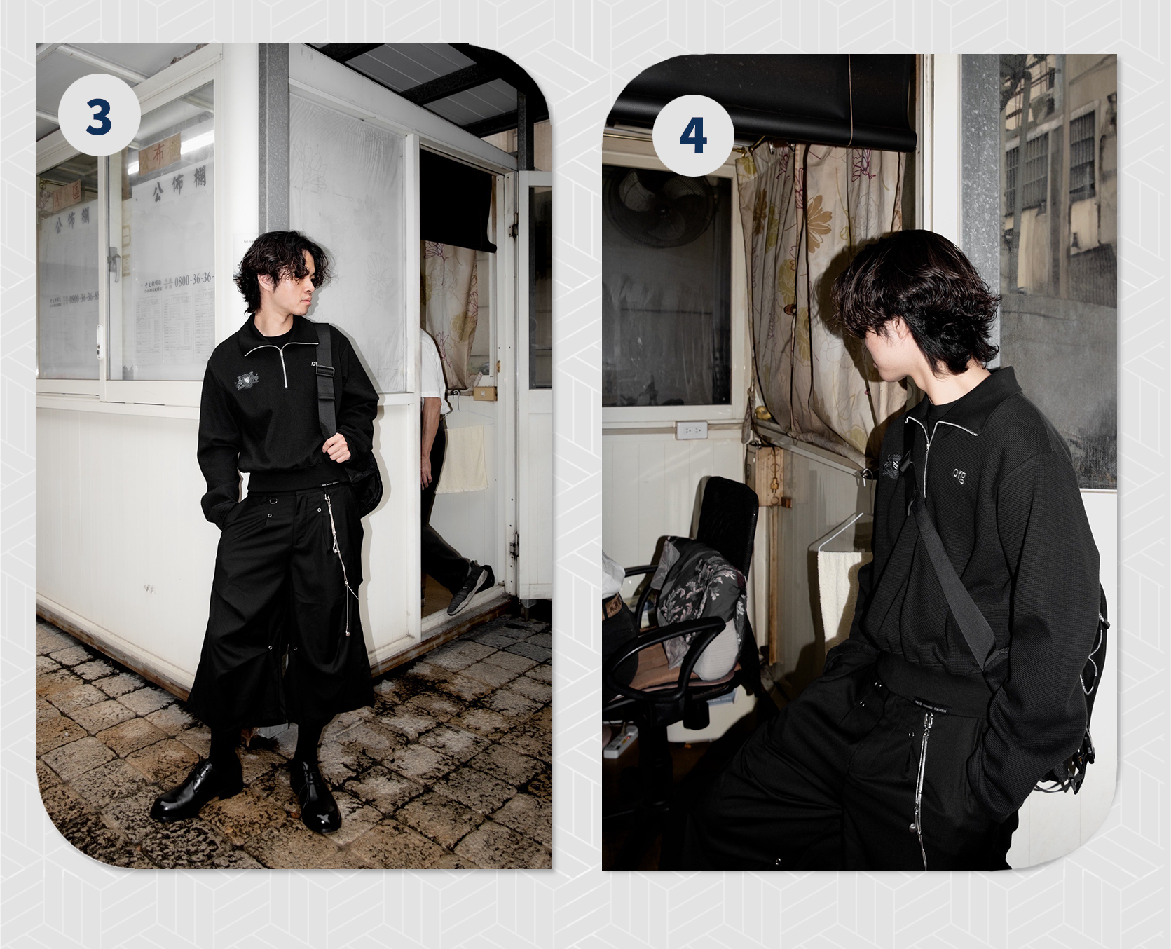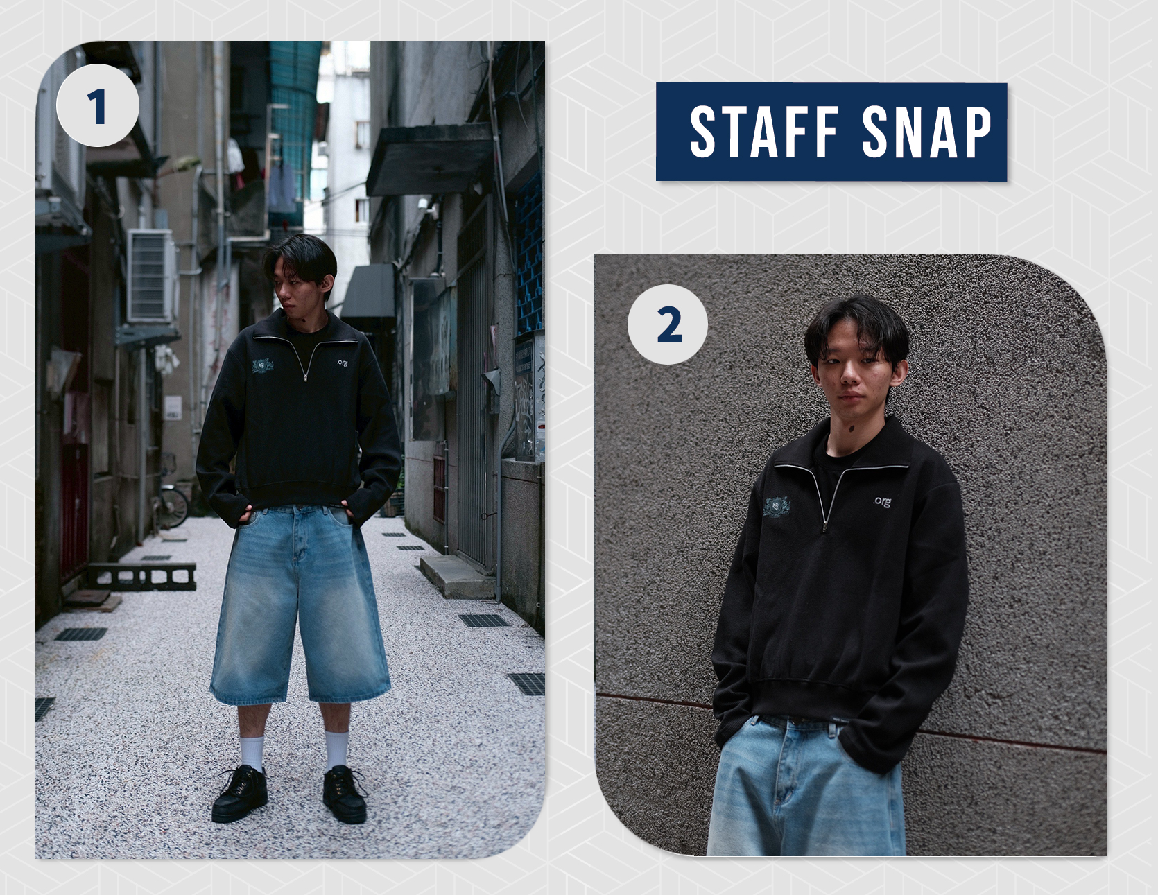 - 立領半拉鍊,胸前繡有聯名品牌標誌
