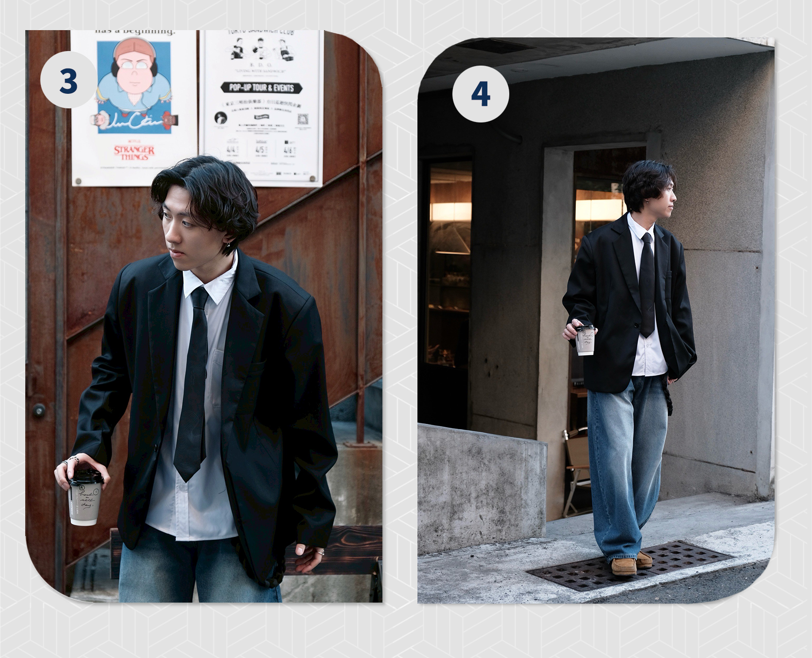- 正面中央有隱藏式扣帶,袖口開岔設計