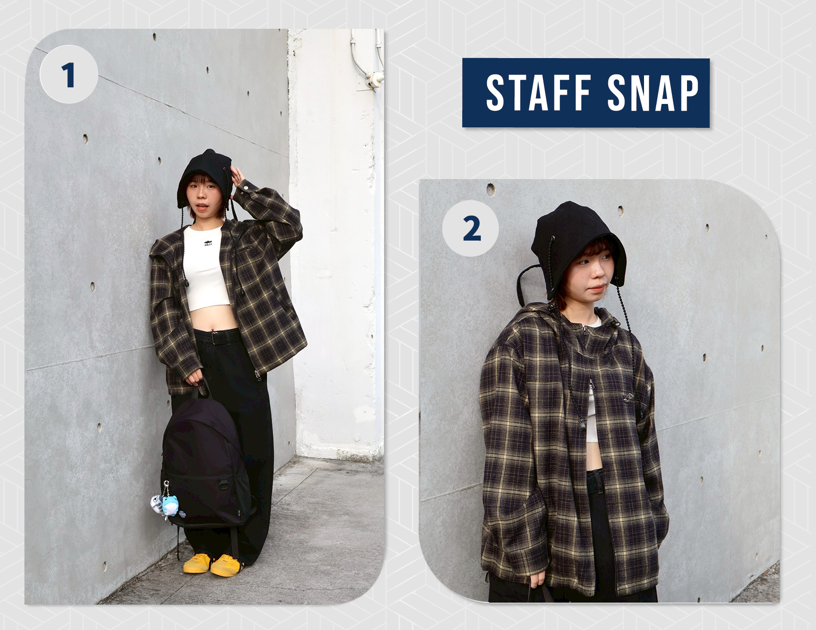 - 立領連帽與下擺附抽繩,可依喜好調整