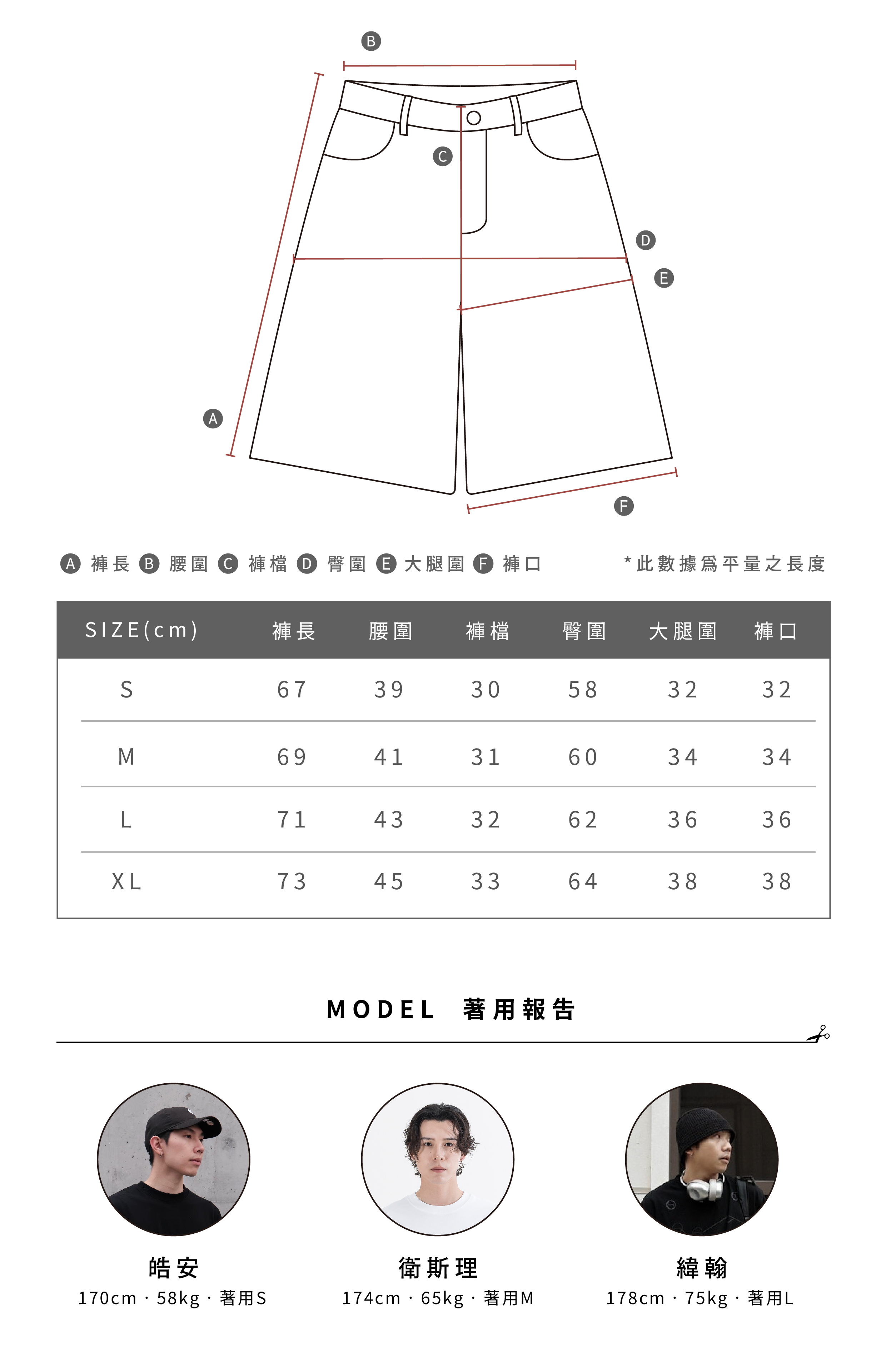 - 七分褲版型,兩側大口袋造型
