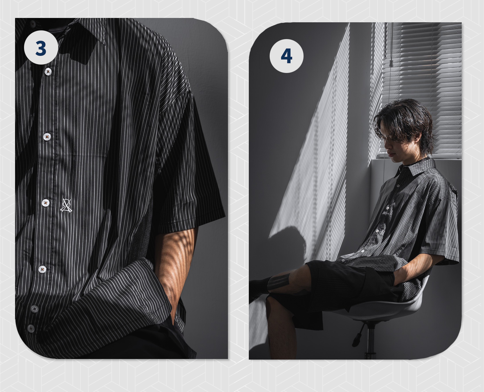 - 寬大BIG SHIRT五分袖條紋襯衫剪裁