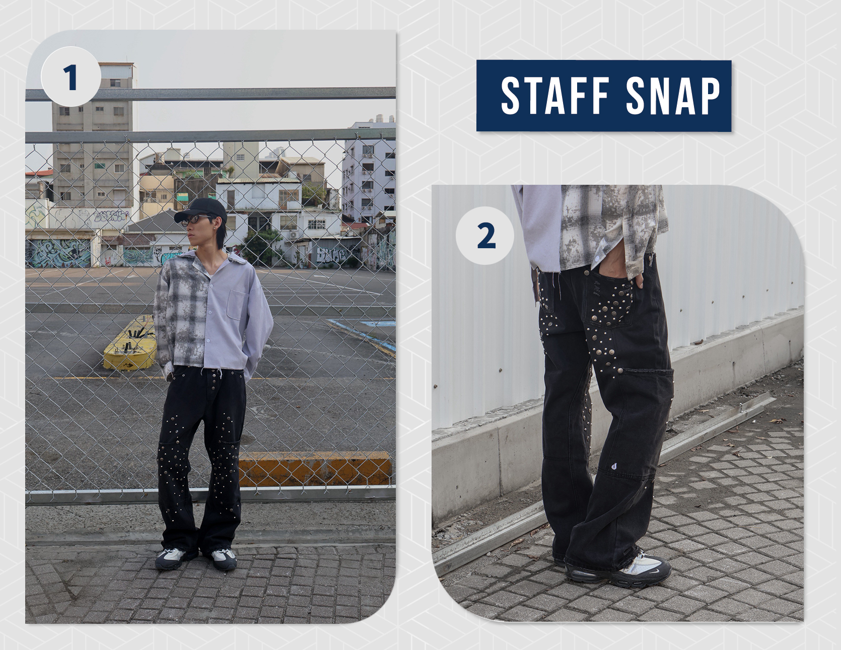- 磨破刷舊設計,褲頭皮帶環